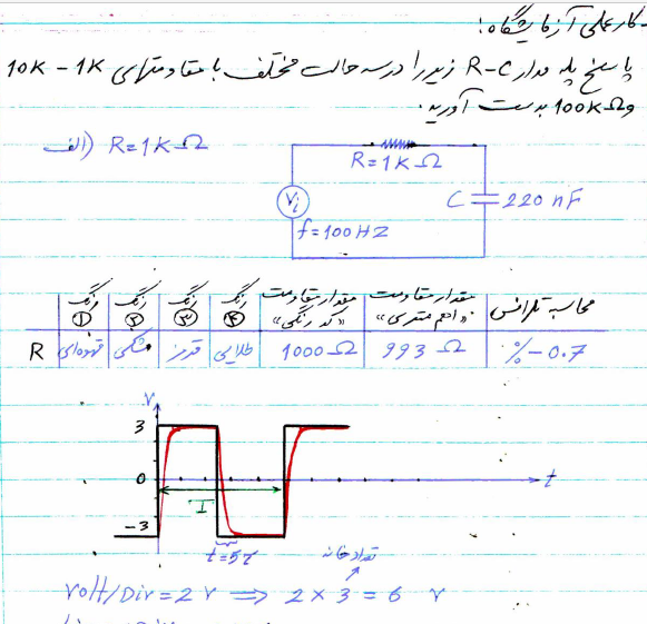 بررسی مدار RC توسط قانون KVL